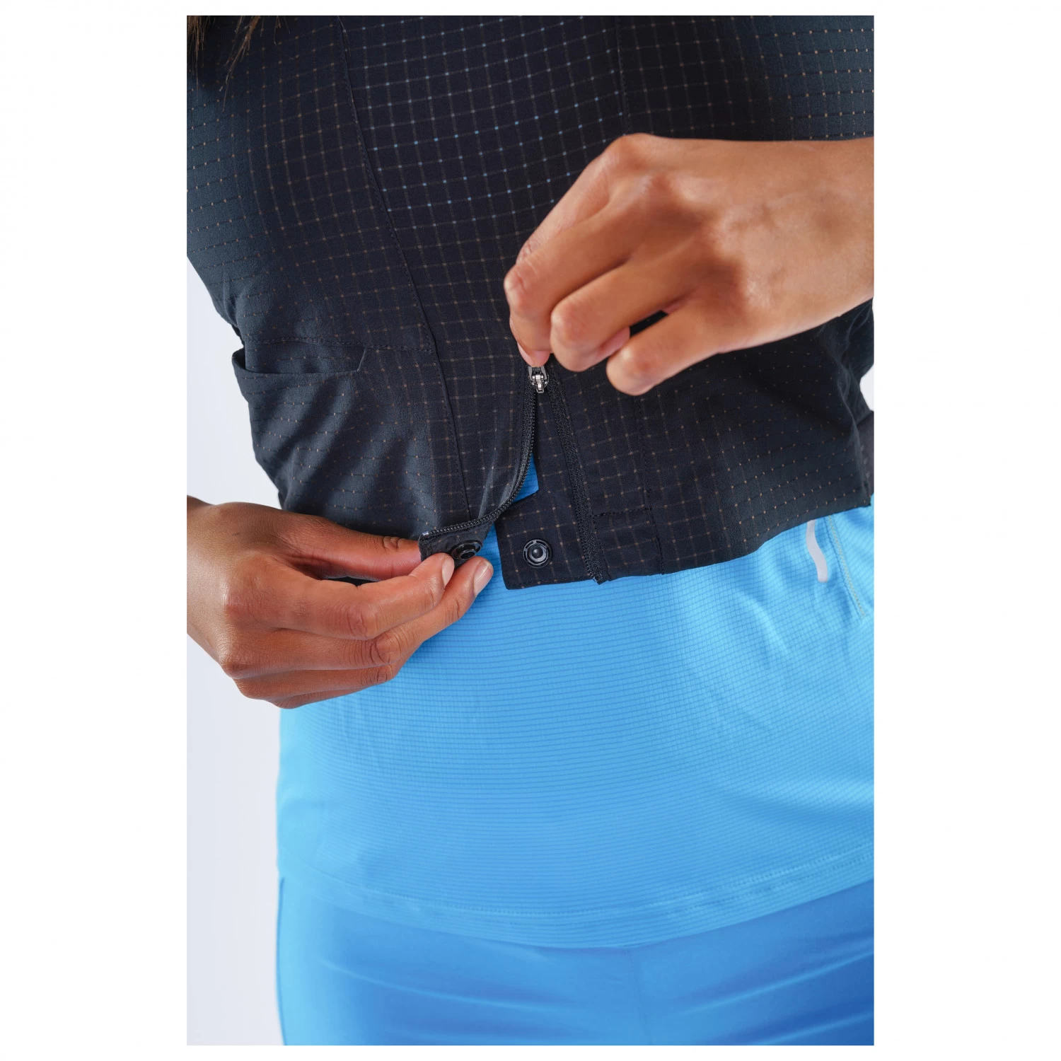 Das besonders dehnbare Material sorgt für eine präzise Passform beim Trailrunning. Über einen Reißverschluss auf der Vorderseite kann die Laufweste schnell an- und ausgezogen werden. Ein elastischer Saum auf der Unterseite schützt gegen ein Scheuern auf der Haut. Mehrere Taschen sorgen während dem Laufen am Berg für einen schnellen Zugriff auf Proviant und zusätzliche Bekleidung. Die beiden beiliegenden Trinkflaschen können auf der Vorderseite in passenden Taschen verstaut werden.
